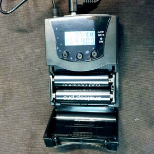 Deze zender heeft een ingebouwde accu. Je kan hem ook gewoon op de adapter aansluiten en na opladen gaat hij 10 uur mee!  Ideaal voor silent disco gebruik buiten op een plek waar geen stroom is, maar ook voor een rondleiding met een groep.
