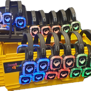 silent disco kopenSilent disco kopen – silent disco set 20 koptelefoons, zender, oplader, kabels compleet